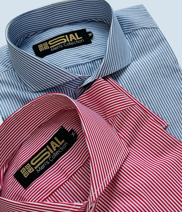 Red & Sky Stripe Formal Shirt